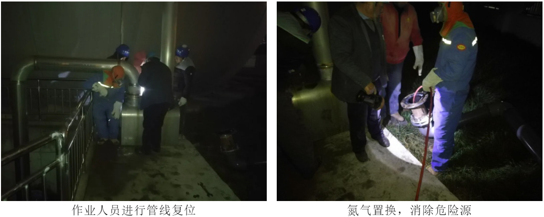 在安全技術管理方面,針對動火作業以及抽堵盲板作業,嚴格執行危險作業票審批規范,嚴格遵守安全操作規程,做到先通風,再檢測,后作業。具體對已進入投產階段的一期厭氧系統臨時停運,且對需切割或施焊的管線利用氮氣進行氣體置換直至檢測合格;同時,對作業周邊環境氣體進行檢測,兩方面均已檢測合格且在管理人員確認條件具備后方可開始作業。